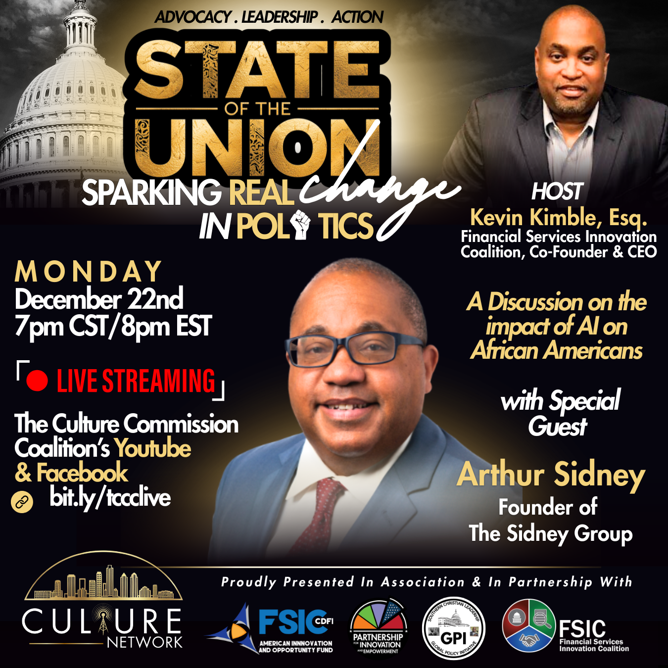 FSIC actively pursues initiatives in economic empowerment, healthcare equity, diversity and inclusion. FSIC implements programs such as the AIOF Dream Creators Workforce Development Program and the Minority Impact Small Business Empowerment Funding Program, alongside task forces focusing on antitrust, AI and technology inclusion, childhood education and daycare policy, infrastructure, housing, technology inclusion.